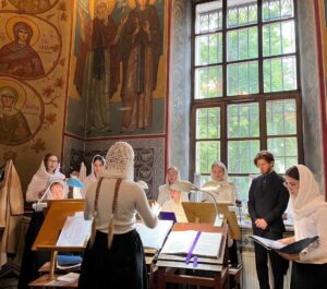 Богослужебные песнопения исполнил хор Калужского духовного училища под управлением воспитанницы IV курса Бойко Елизаветы.