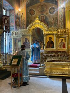 9 июля 2025 года в день памяти Тихвинской иконы Божией Матери, в Свято-Троицком кафедральном соборе города Калуги была совершена Литургия, которую возглавил ключарь иерей Максим Лихонин.