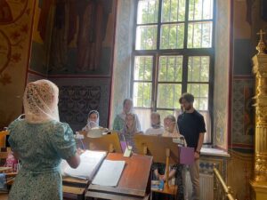 Богослужебные песнопения исполнил хор Калужского духовного училища под управлением воспитанницы IV курса Бойко Елизавета.