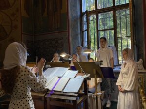 Богослужебные песнопения исполнил хор Калужского духовного училища под управлением воспитанницы IV курса Павловой Марии.