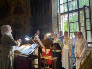 Богослужебные песнопения исполнил хор Калужского духовного училища под управлением воспитанницы IV курса Бойко Елизаветы.