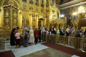 В Свято-Троицком соборе святыню торжественно встречали: духовенство г. Калуги, прихожане, монашествующие и паломники.