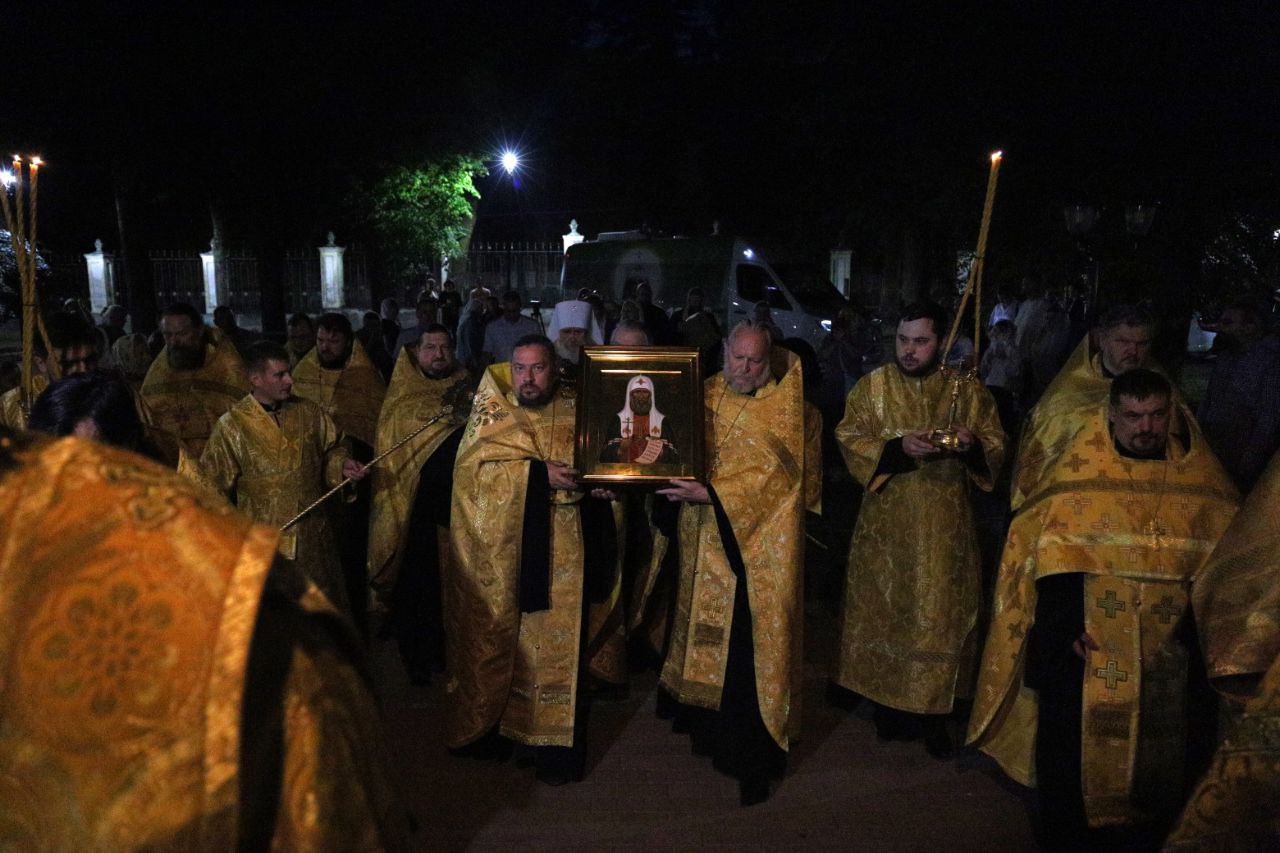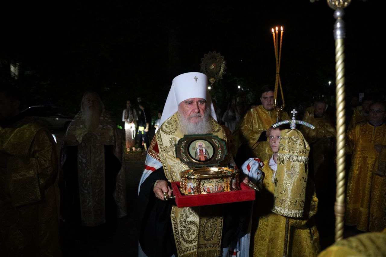 Поздно вечером 6 августа в Свято-Троицком кафедральном соборе г. Калуги митрополит Калужский и Боровский Климент торжественно встретил ковчег с частицей мощей святителя Тихона, патриарха Московского и всея России.