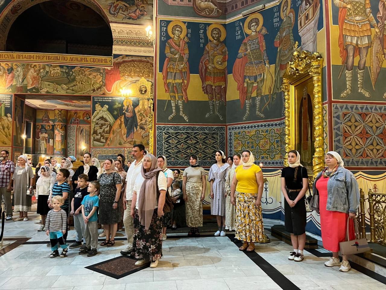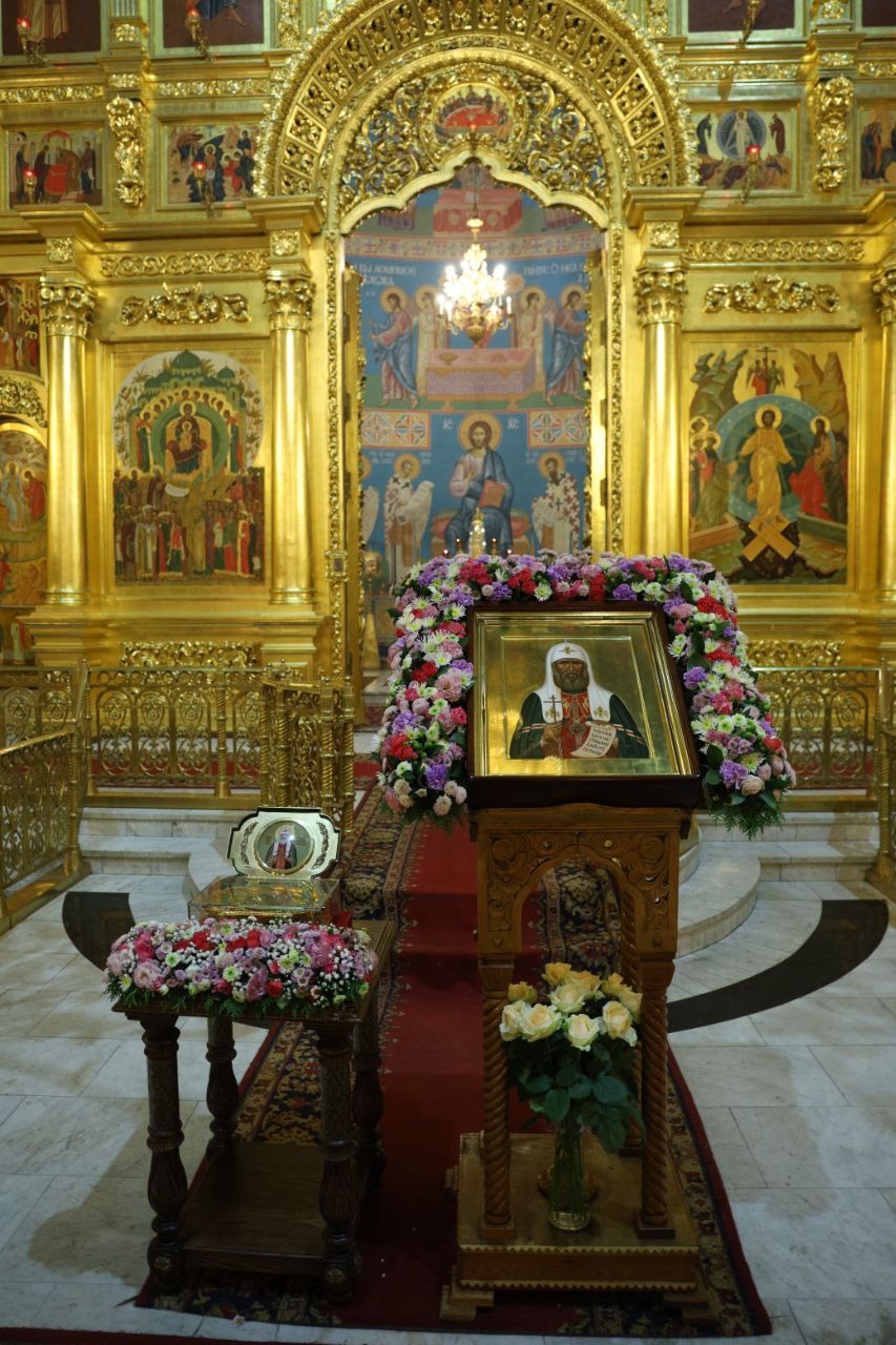 Был совершен молебен святителю Тихону. 7 и 8 августа, по окончании Божественной литургии и до вечернего богослужения, каждые два часа, начиная с 12:00, в соборе совершаются молебные пения с чтением акафиста святителю Тихону. В 18:00 8 августа, после молебна с чтением акафиста состоятся торжественные проводы святыни.