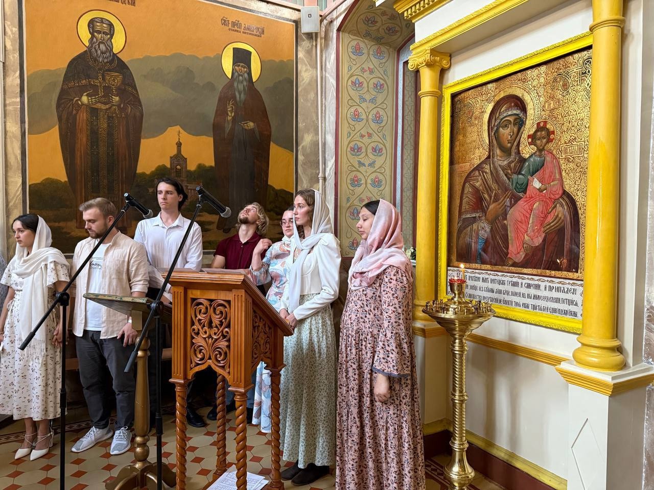 Песнопения исполнили: смешанный хор Калужской духовной семинарии и Калужского духовного училища под управлением воспитанницы IV курса Павловой Марии и приходской хор храма под руководством Межуевой Ольги Ивановны.