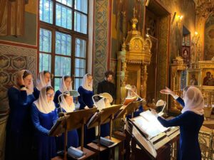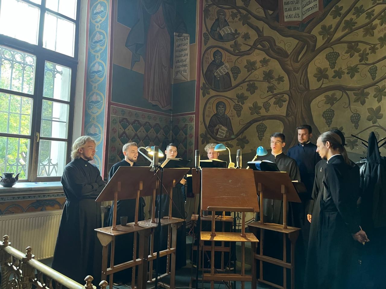 Богослужебные песнопения исполнил хор Калужской духовной семинарии под управлением воспитанника IV курса Карпенко Ивана и хор Калужского духовного училища под управлением воспитанницы IV курса Павловой Марии.