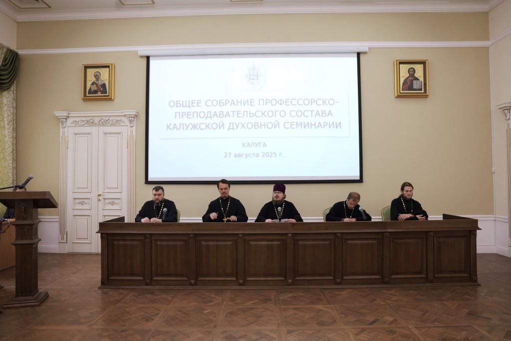 27 августа 2025 года в Актовом зале Калужской митрополии состоялось Общее собрание профессорско-преподавательского состава Калужской духовной семинарии под председательством ректора протоиерея Сергия Третьякова.