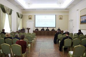 Иерей Даниил Салищев, проректор по научно-богословской работе, сообщил о плане проведения научных конференций и образовательных мероприятий и о предполагаемом участии в них преподавателей и учащихся Семинарии.
