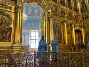 28 августа 2025 года в праздник Успения Пресвятой Богородицы в Свято-Троицком кафедральном соборе города Калуги была совершена Литургия, которую возглавил ключарь собора иерей Максим Лихонин.