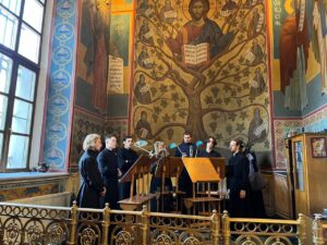 Богослужебные песнопения исполнил хор Калужской духовной семинарии под управлением воспитанника III курса Девличарова Фрола и хор Калужского духовного училища под управлением воспитанницы IV курса Павловой Марии.