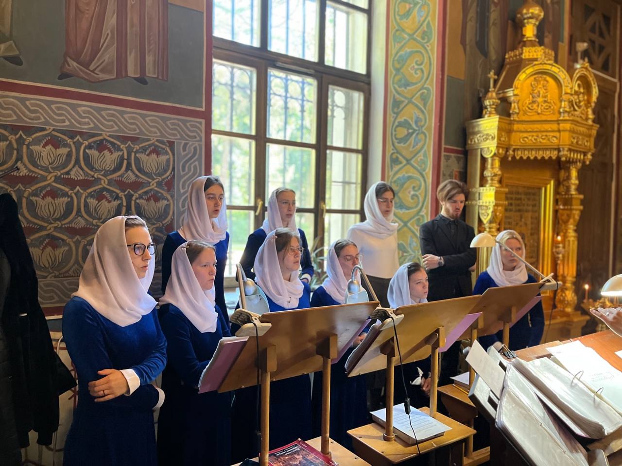Богослужебные песнопения исполнил хор Калужской духовной семинарии под управлением воспитанника III курса Девличарова Фрола и хор Калужского духовного училища под управлением воспитанницы IV курса Павловой Марии.