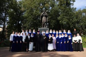 Далее были сделаны традиционные фотографии возле памятника святому праведному Лаврентию Калужскому и преподобномученику Кукше в Городском парке Калуги.