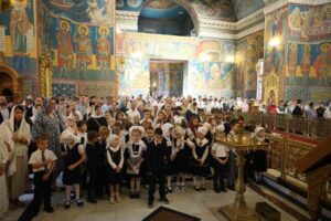 Затем был отслужен молебен на начало нового учебного года, после которого митрополит Климент окропил всех обучающихся святой водой.