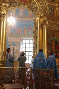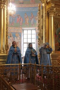 21 сентября 2025 года в Неделю 15-ю по Пятидесятнице, праздник Рождества Пресвятой Богородицы, в Свято-Троицком кафедральном соборе города Калуги была совершена Литургия, которую возглавил иеромонах Алексей (Щукин).