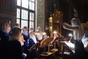 Богослужебные песнопения исполнил хор Калужской духовной семинарии под управлением воспитанника IV курса Карпенко Иоанна и хор Калужского духовного училища под управлением преподавателя училища Морарь Марии Витальевны.