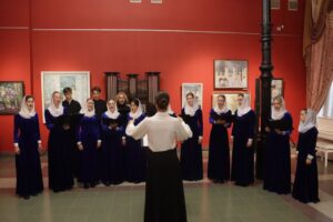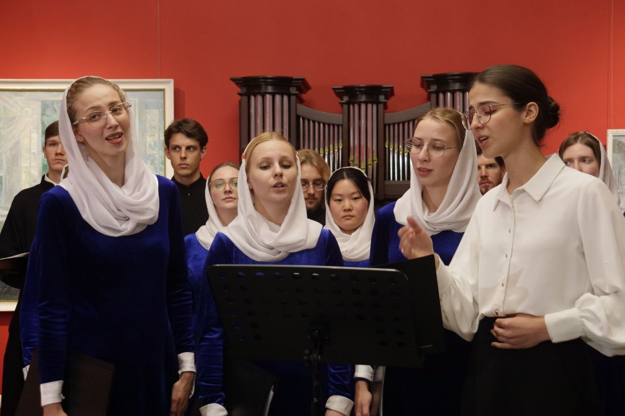 Смешанный хор Калужского духовного училища и Калужской духовной семинарии исполнил музыкально-хоровые произведения под руководством преподавателя училища Марии Витальевны Морарь. В программе прозвучали как духовные, так и классические концертные произведения, включая «За тихой рекой» (муз. и сл. С. Трофимова), «Родина» (муз. А. Полячека, сл. Ф. Савинова) и русская народная песня в обработке А. Лядова «Ты не стой колодец».