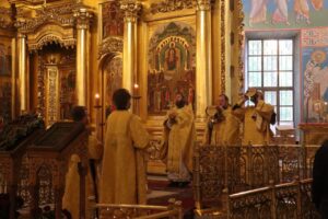 28 сентября 2025 года в Неделю 16-ю по Пятидесятнице в Свято-Троицком кафедральном соборе города Калуги была совершена Литургия, которую возглавил иеромонах Феофан (Сурин).
