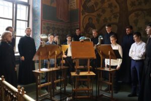 Богослужебные песнопения исполнил хор Калужской духовной семинарии под управлением воспитанника III курса Девличарова Фрола и хор Калужского духовного училища под управлением воспитанницы IV курса Бойко Елизаветы.