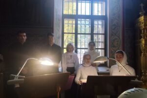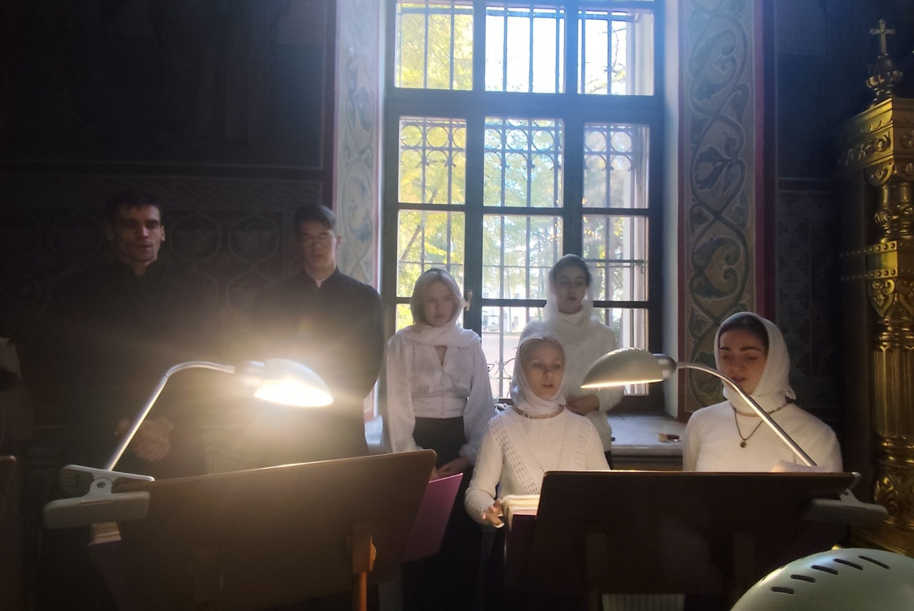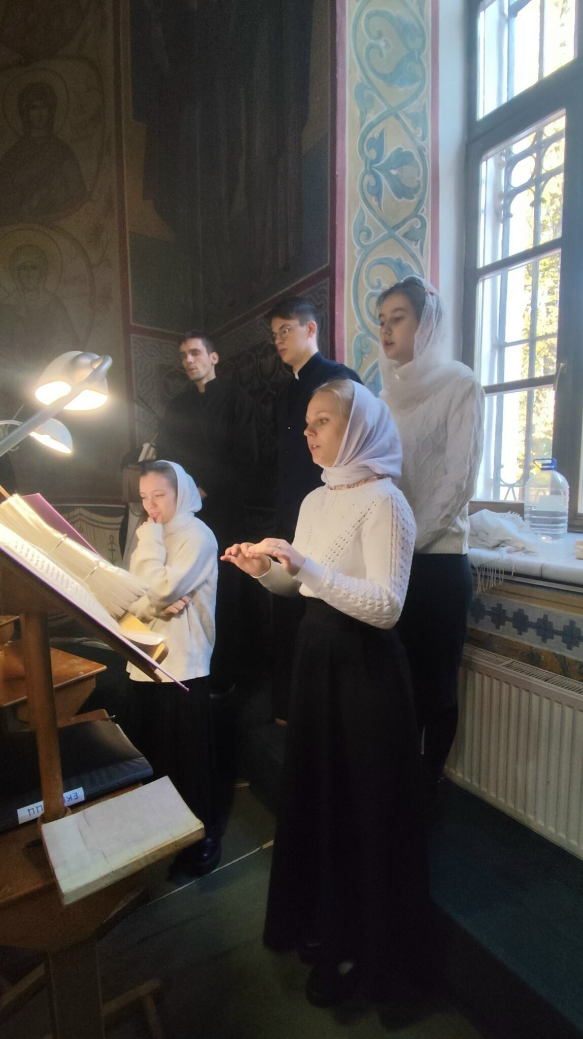 Богослужебные песнопения исполнила певческая группа Калужского духовного училища под управлением воспитанницы IV курса Бойко Елизаветы.
