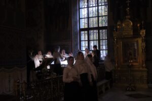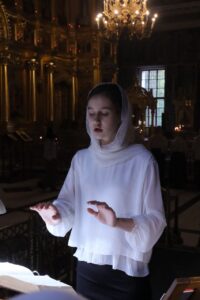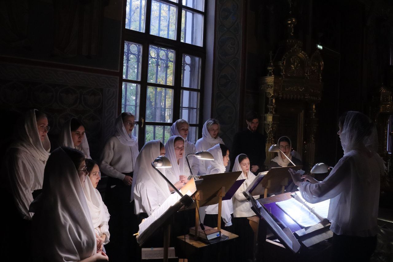 Богослужебные песнопения исполнил хор Калужского духовного училища под управлением воспитанницы III курса Орос Валерии.
