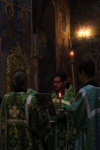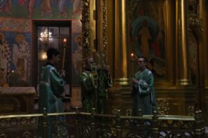 7 октября 2025 года в канун дня памяти преподобного Сергия, игумена Радонежского, в Свято-Троицком кафедральном соборе города Калуги было совершено Всенощное бдение, которое возглавил ключарь собора иерей Максим Лихонин.