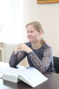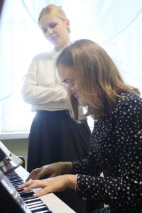 «7 октября 2025 года я впервые проводила урок по гармонии для третьего курса. Это был волнительный и новый опыт для меня, благодаря которому я смогла обратить внимание на свои сильные стороны, как будущего преподавателя, и на недостатки. Обстановка в аудитории была располагающей и не напряжённой, у нас получилось справиться с запланированными на урок задачами раньше предполагаемого времени, что не могло не радовать. От каждого из студентов чувствовалась если не заинтересованность происходящим на уроке, то определенная готовность к изучению нового материала и выполнению практических занятий. Общее впечатление от проведенного занятия у меня осталось положительным, хотя мне ещё есть над чем работать».
