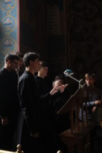 Богослужебные песнопения исполнил хор Калужской духовной семинарии под управлением воспитанника II курса Лавренова Василия и хор Калужского духовного училища под управлением воспитанницы III курса Орос Валерии.