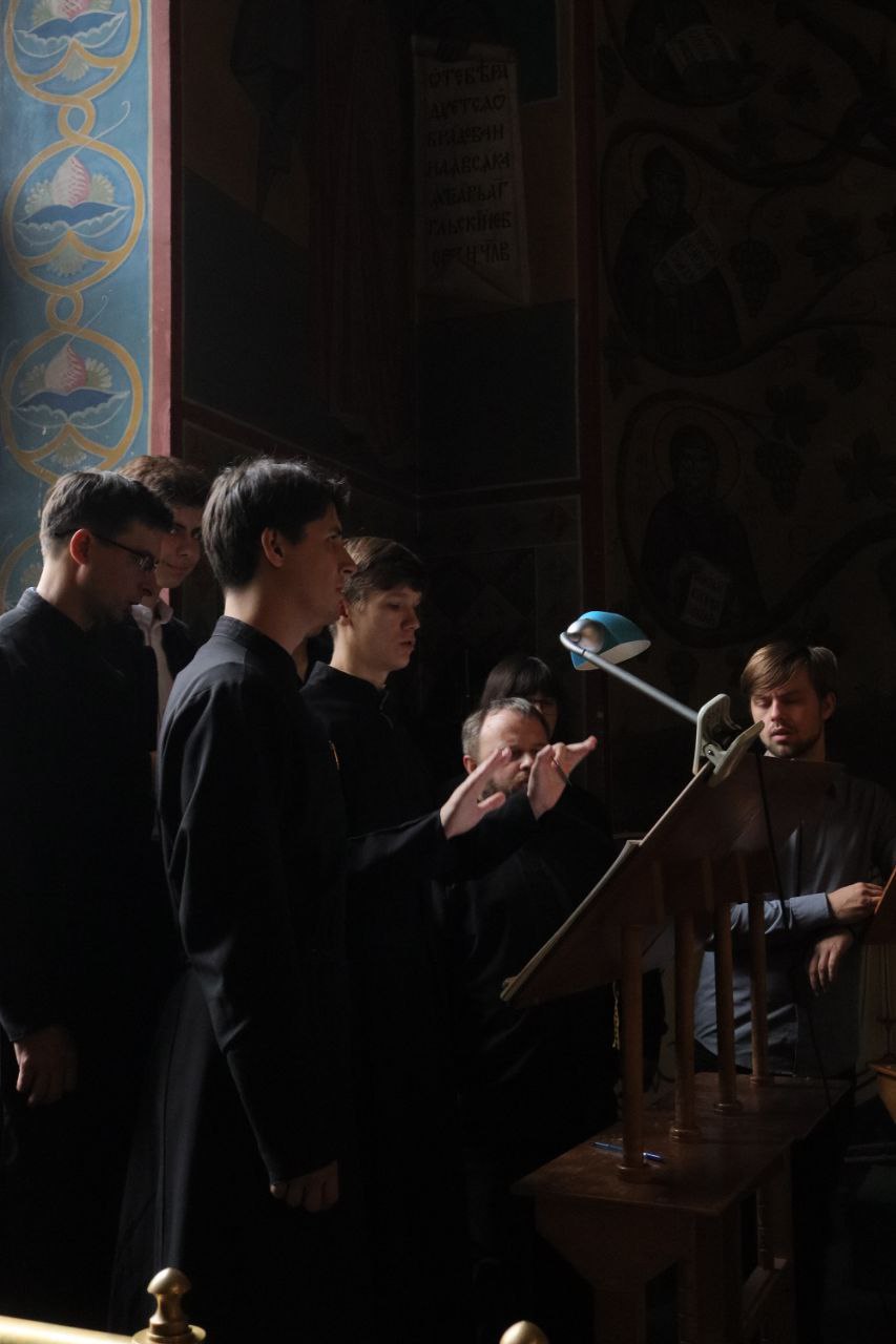 Богослужебные песнопения исполнил хор Калужской духовной семинарии под управлением воспитанника II курса Лавренова Василия и хор Калужского духовного училища под управлением воспитанницы III курса Орос Валерии.