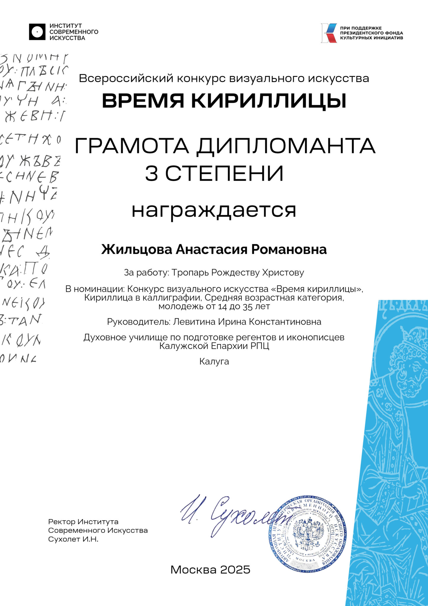 Конкурс визуального искусства «Время кириллицы» – Кириллица в каллиграфии: