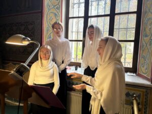 Богослужебные песнопения исполнила певческая группа Калужского духовного училища под управлением воспитанницы IV курса Экономовой Марии.