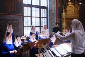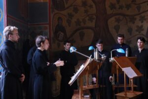 Богослужебные песнопения исполнил хор Калужской духовной семинарии под управлением воспитанника IV курса Матвеева Кирилла и хор Калужского духовного училища под управлением преподавателя училища Морарь Марии Витальевны.