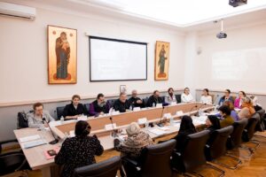 Преподавателей регентских отделений поприветствовала декан факультета церковных искусств, проректор по культуре Академии Е.М. Гундяева.