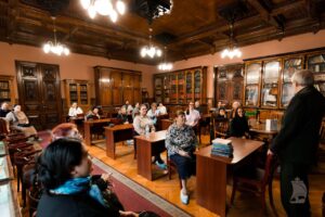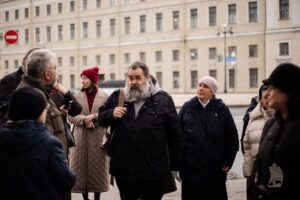 Завершился первый день курсов обзорной экскурсией по местам, связанным с именем Дмитрия Степановича. Отправной точкой стала Государственная академическая капелла, директором которой был композитор.
