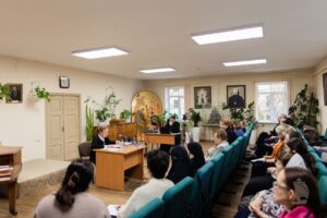 Далее в профессорской Духовной школы состоялось открытие курсов, на которых к собравшимся обратился ректор Санкт-Петербургской Духовной Академии епископ Петергофский Силуан с приветственным словом.