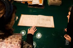 Завершилась программа посещением Кабинета уникальных рукописей Российского института истории искусств, где участники познакомились с факсимиле и оригинальными партитурами Дмитрия Степановича Бортнянского, среди которых его рукописи духовных концертов, опер, клавирных произведений и других нотных материалов, сохраняющих руку их автора.