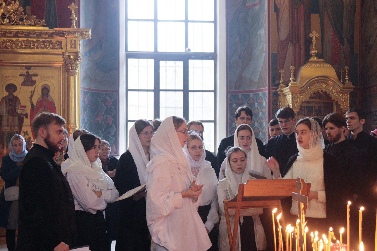 Богослужебные песнопения исполнил хор Калужской духовной семинарии под управлением воспитанника IV курса Карпенко Ивана и хор Калужского духовного училища под управлением воспитанницы IV курса Павловой Марии.