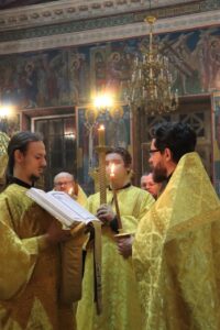 Богослужебные песнопения исполнил хор Калужской духовной семинарии под управлением воспитанника IV курса Карпенко Ивана и хор Калужского духовного училища под управлением воспитанницы IV курса Бойко Елизаветы.
