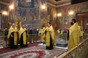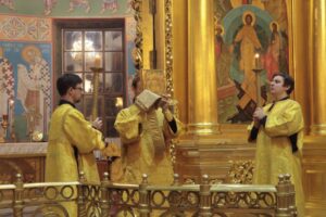 1 ноября 2025 года в канун Недели 21-ой по Пятидесятнице в Свято-Троицком кафедральном соборе города Калуги было совершено Всенощное бдение, которое возглавил ключарь собора иерей Максим Лихонин.