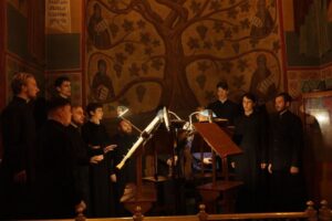 Богослужебные песнопения исполнил хор Калужской духовной семинарии под управлением воспитанника IV курса Карпенко Ивана и хор Калужского духовного училища под управлением воспитанницы IV курса Бойко Елизаветы.