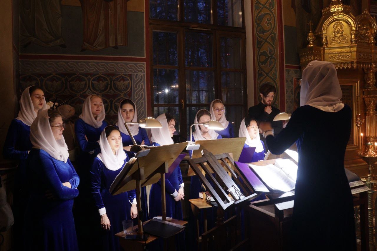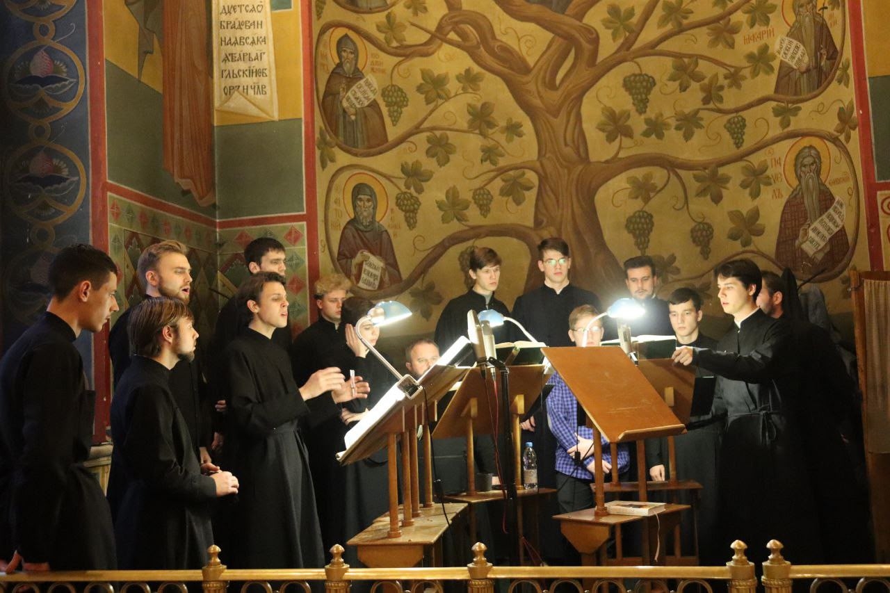 Богослужебные песнопения исполнил хор Калужской духовной семинарии под управлением воспитанника IV курса Матвеева Кирилла и хор Калужского духовного училища под управлением воспитанницы IV курса Экономовой Марии.