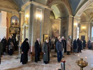 Богослужебные песнопения исполнила певческая группа под управлением воспитанницы IV курса Экономовой Марии.