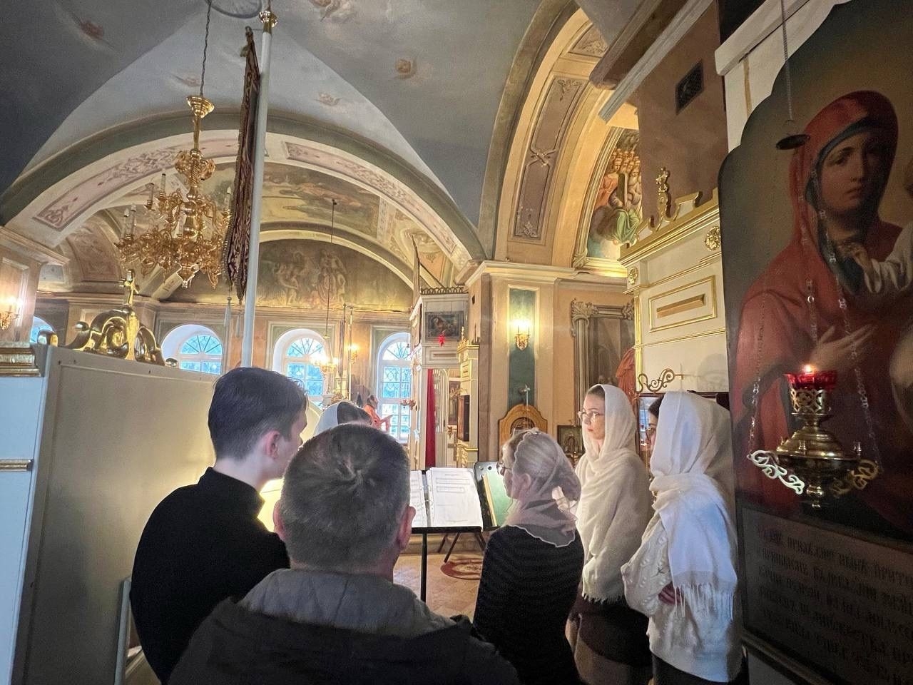 Богослужебные песнопения исполнила певческая группа под управлением воспитанницы IV курса Экономовой Марии.