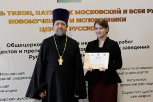 С благодарственным словом к организаторам от лица участников обратились проректор по учебной работе Калужского духовного училища М. А. Чеппель и победитель среди студентов в номинации «Святитель Тихон, Патриарх Московский и всея Руси» студентка Московской духовной академии Е. П. Шевченко.