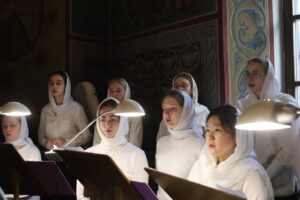 Богослужебные песнопения исполнил хор Калужского духовного училища под управлением воспитанницы IV курса Павловой Марии.