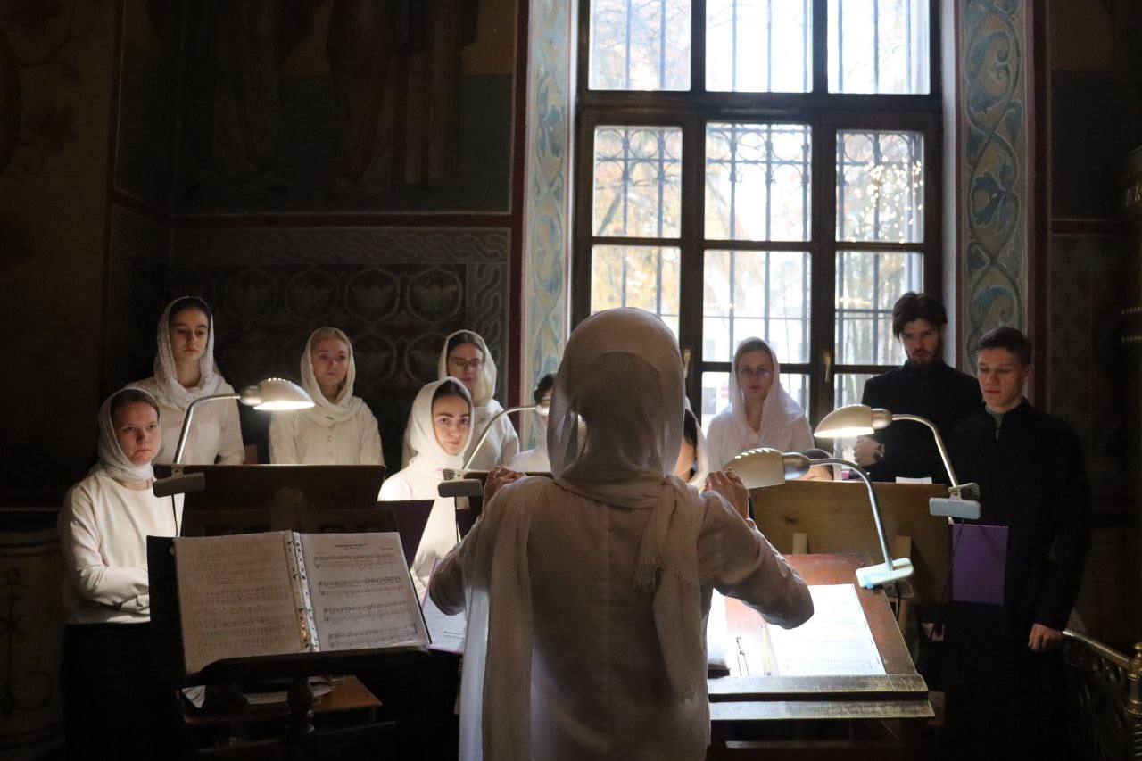 Богослужебные песнопения исполнил хор Калужского духовного училища под управлением воспитанницы IV курса Павловой Марии.
