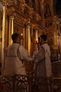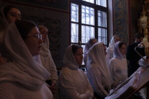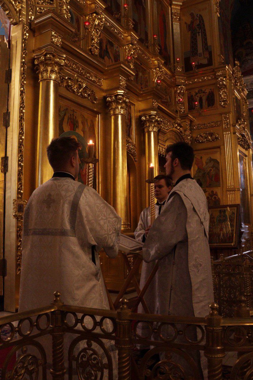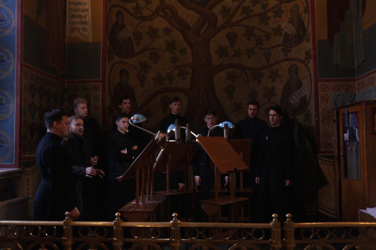 Богослужебные песнопения исполнил хор Калужской духовной семинарии под управлением воспитанника IV курса Карпенко Ивана и хор Калужского духовного училища под управлением преподавателя училища Морарь Марии Витальевны.