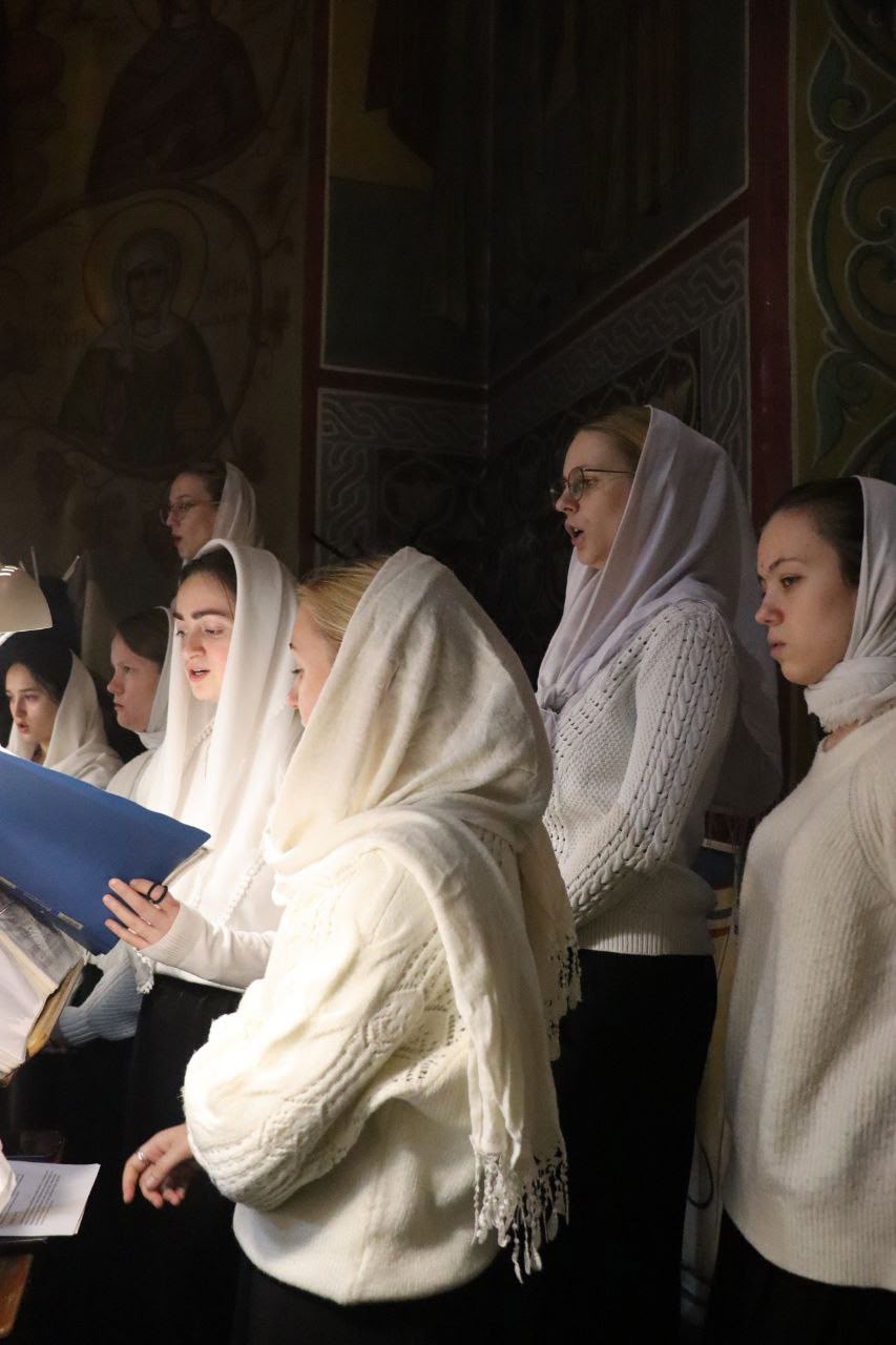 Богослужебные песнопения исполнил хор Калужского духовного училища под управлением воспитанницы IV курса Экономовой Марии.