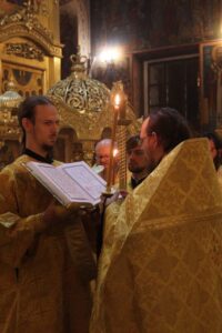 22 ноября 2025 года в канун Недели 24-ой по Пятидесятнице в Свято-Троицком кафедральном соборе города Калуги было совершено Всенощное бдение, которое возглавил иеромонах Феофан (Сурин).