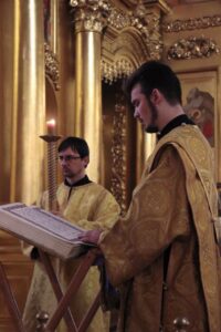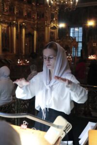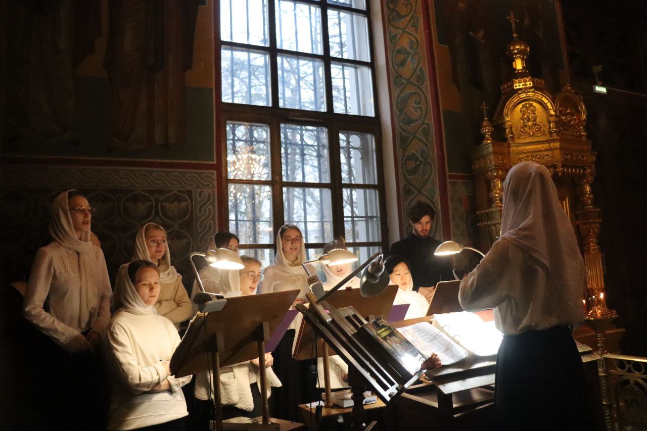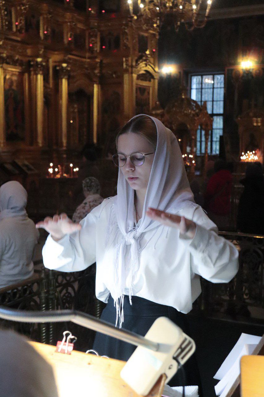 Богослужебные песнопения исполнил хор Калужского духовного училища под управлением воспитанницы IV курса Бойко Елизаветы.