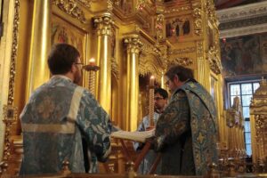 4 декабря 2025 года в день памяти Введения во храм Пресвятой Богородицы в Свято-Троицком кафедральном соборе города Калуги была совершена Литургия, которую возглавил ключарь собора иерей Максим Лихонин.